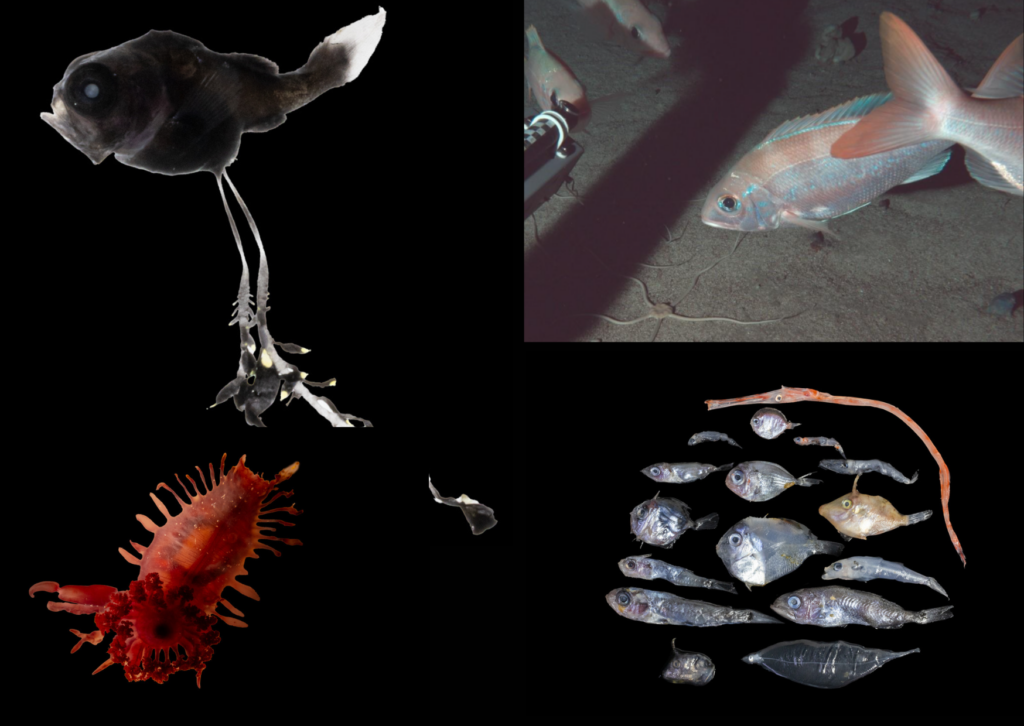 Just 10 miles northeast of Cayman Brac, the first ever images were taken of Lawfords Bank revealing a wide, sandy plateau rising sharply from deeper waters. Underwater camera images revealed an array of echinoderms (sea cucumbers, urchins and starfish), and mid‑water trawls revealed a diverse mix of species including shrimp, enope squid, and the larvae of puffer fish, pipefish, triggerfish and even the striking fangtooth fish.
