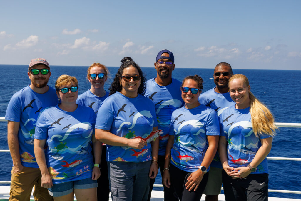 Two seabird experts form DoE spent each day of the expedition scanning the horizon from the bridge of the James Cook to document Cayman’s prolific seabirds. While their on land work focuses on monitoring key nesting sites for species such as Red-footed Boobies, Brown Boobies, and Magnificent Frigatebirds, offshore monitoring offered vital new insights—especially for young birds that are far harder to track after leaving the nest.